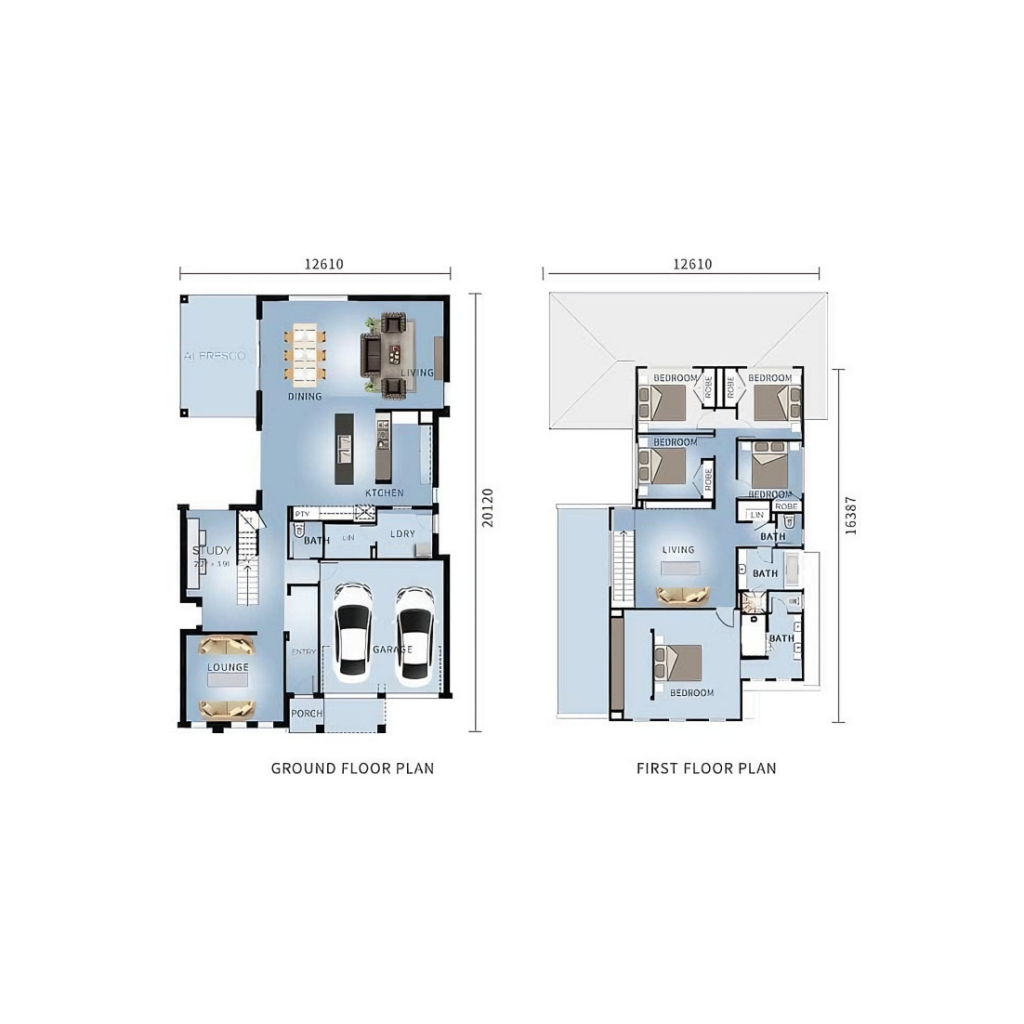 Daily life flows smoothly in this villa, thanks to its intuitive layout. The ground floor is designed for connection: the open living and kitchen area encourages interaction, while the lounge and study offer quiet spaces for focused work or relaxation. The garage keeps vehicles secure and clutter at bay, and the powder room adds convenience for guests. For older family members or those who prefer single-level living, the ground floor’s full suite of amenities means you never have to climb stairs to access essential spaces.