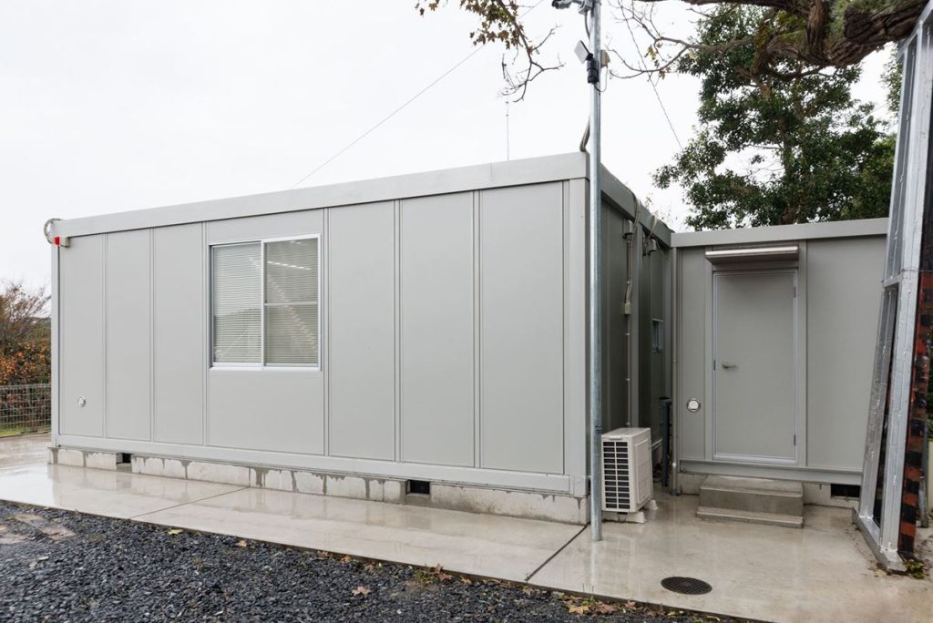 Shipping containers are built to survive rough seas, heavy loads, and extreme weather—so they make inherently tough office spaces. This durability translates to strong seismic (earthquake) performance, a critical benefit in regions prone to tremors. The structure in the photos sits on a raised foundation, a common setup that adds extra stability. Its steel frame can withstand shocks that would damage lighter temporary structures. Beyond earthquakes, these offices hold up to heavy rain, strong winds, and extreme temperatures—especially when fitted with insulation and climate control (like the AC unit visible in the first image). This toughness makes container offices ideal for outdoor or remote sites. They don’t need perfectly level ground (a prepared base helps) and handle on-site wear and tear better than flimsy temporary buildings.